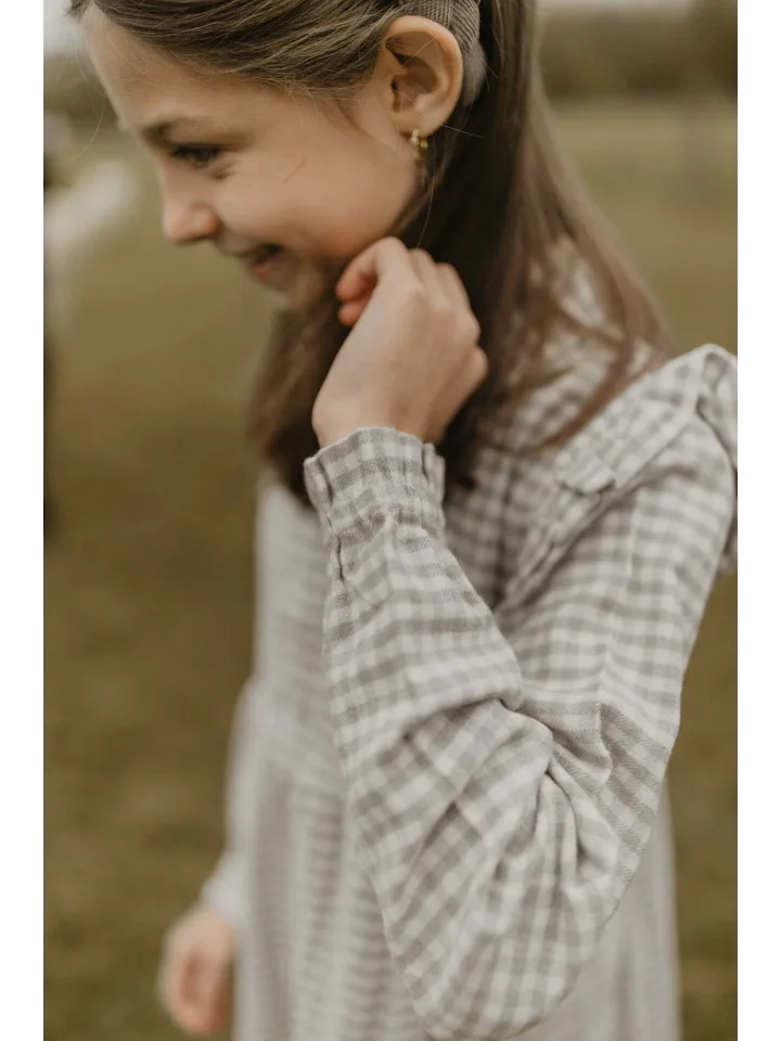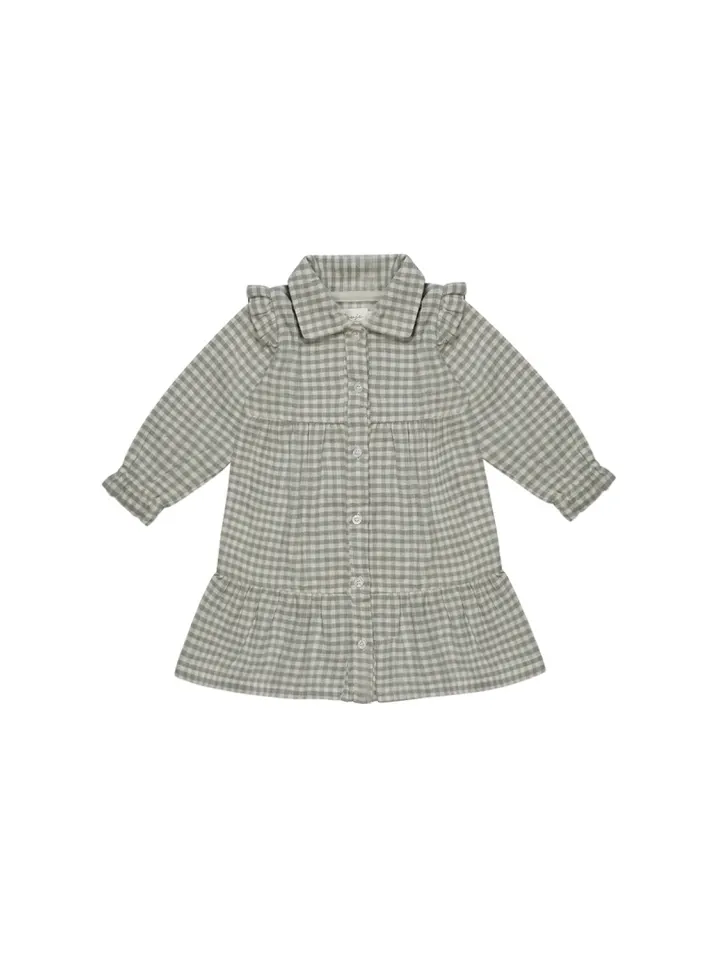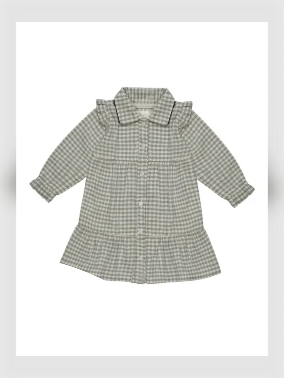 Dieses verspielte Kleid aus weichem, gebürstetem Flanellstoff ist ein gemütlicher Alltagsbegleiter mit liebevollen Details. Das klassische grüne Vichy-Karo verleiht dem Kleid einen zeitlosen Look, während die durchgehende Knopfleiste auf der Vorderseite für einfaches An- und Ausziehen sorgt. Rüschenverzierte Schultern und Ärmelabschlüsse setzen charmante Akzente und machen das Kleid zu einem besonderen Hingucker – bequem, stilvoll und ideal für kühlere Tage. Weicher, gebürsteter Flanellstoff Grünes Vichy-Karo Durchgehende Knopfleiste vorne Rüschen an Schultern und Ärmelsäumen