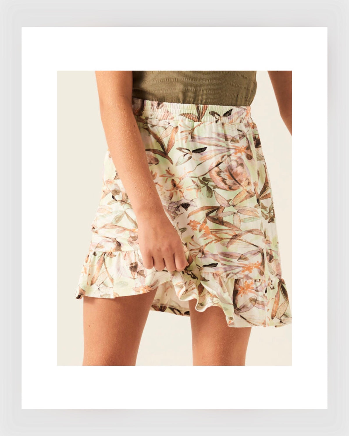 Rock mit allover Print. Mit einem eleganten Rock wie diesem bist Du bereit für die warmen, sommerlichen Tage. Dieser Rock hat eine reguläre Passform, einen elastischen Taillenbund und Rüschen.