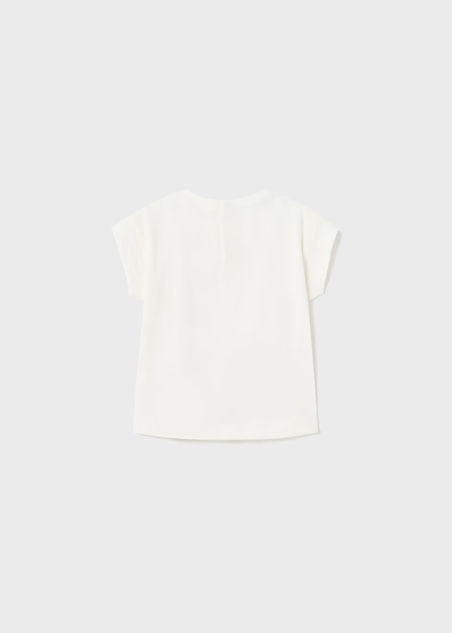 Kleidung ECOFRIENDS 100% nachhaltige Baumwolle. Kurzarm Baby Shirt mit Rüschendetails. Rundkragen. Druckknopfverschluss hinten, um das Anziehen des Kleidungsstücks zu erleichtern. Zierelemente: Fransen. Design mit Musterung.